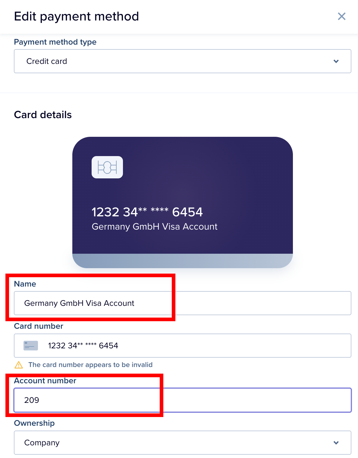 | Account for Corporate Card expenses | Credit card/User or Credit card/Branch |