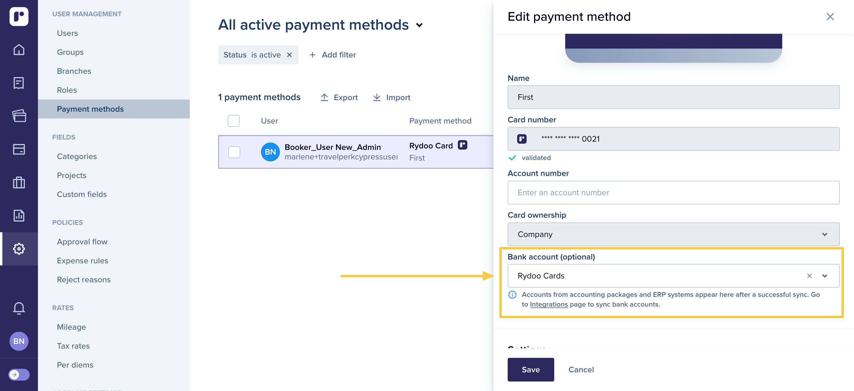 - Click on the relevant user and link the payment method with a Exact Online bank account.