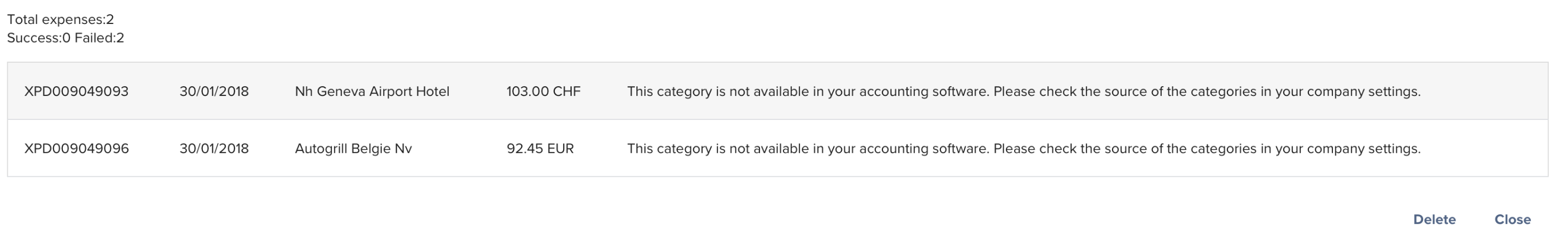 Only expenses with tax rates that have been previously imported to Exact Online will be successfully exported. -