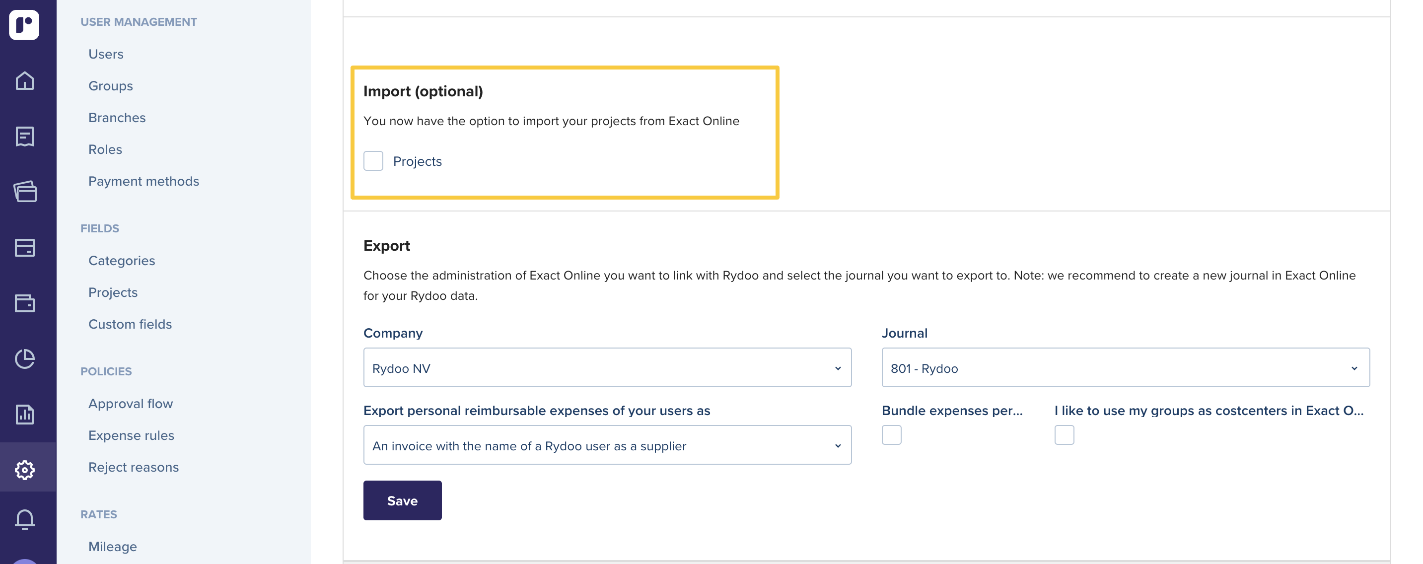 In this section, you can find the possibilities on how to connect Exact Online with Rydoo. The import and export of data is an easy process.