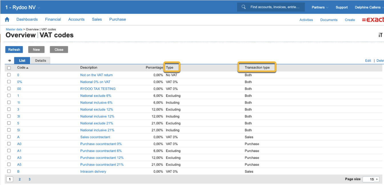 To add any additional tax rate in Exact Online, access 'Master data' > 'Overview | VAT codes'