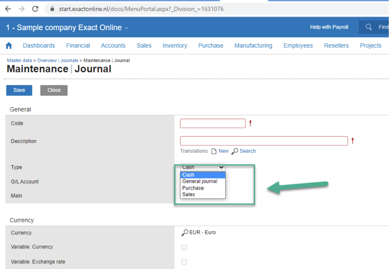 - Validate in Exact Online if your accounting year is still open for that date: