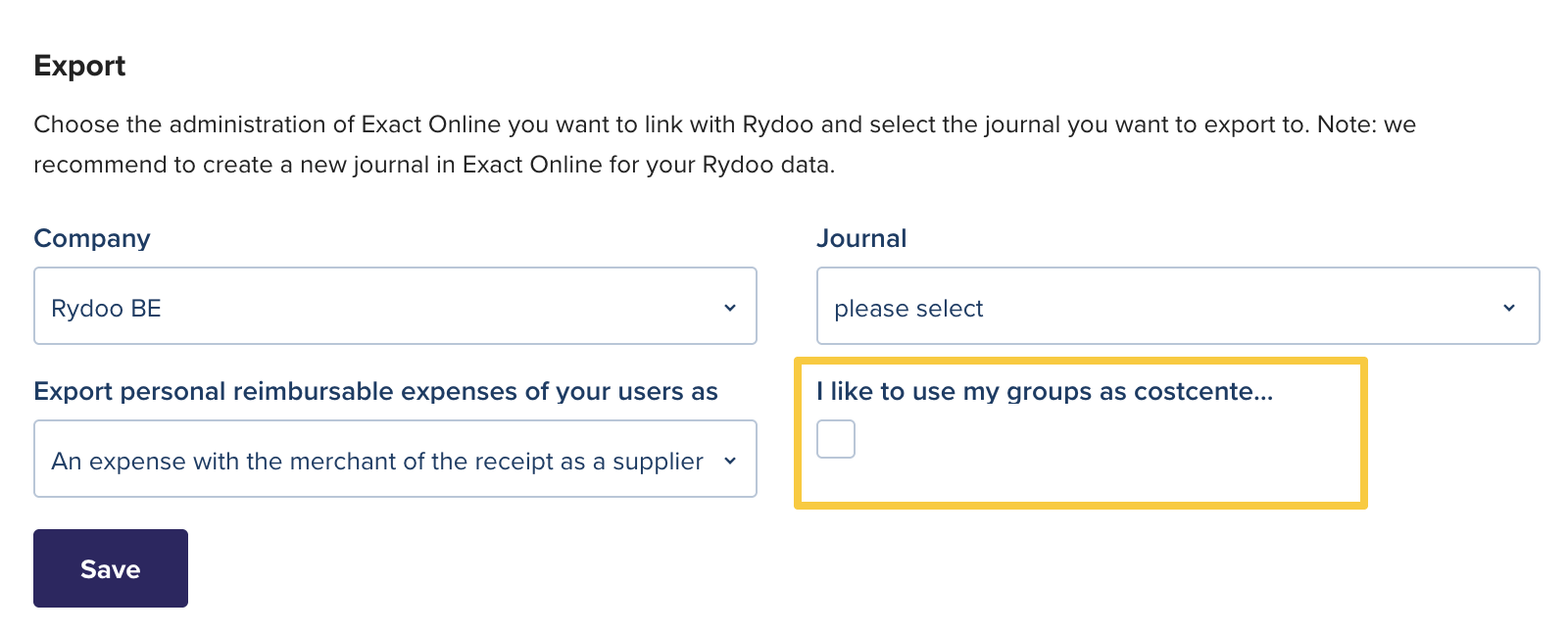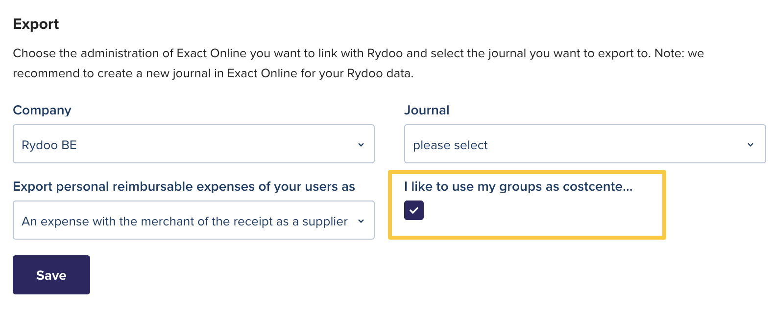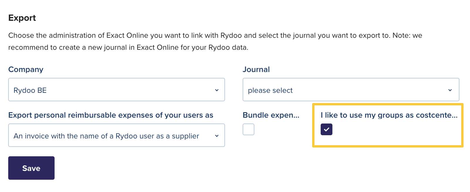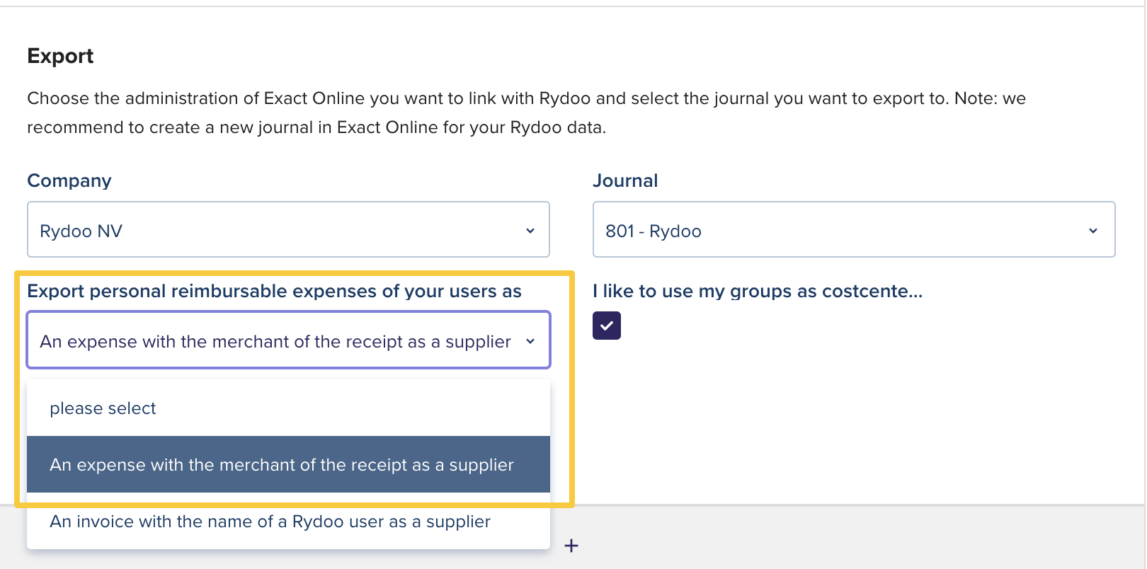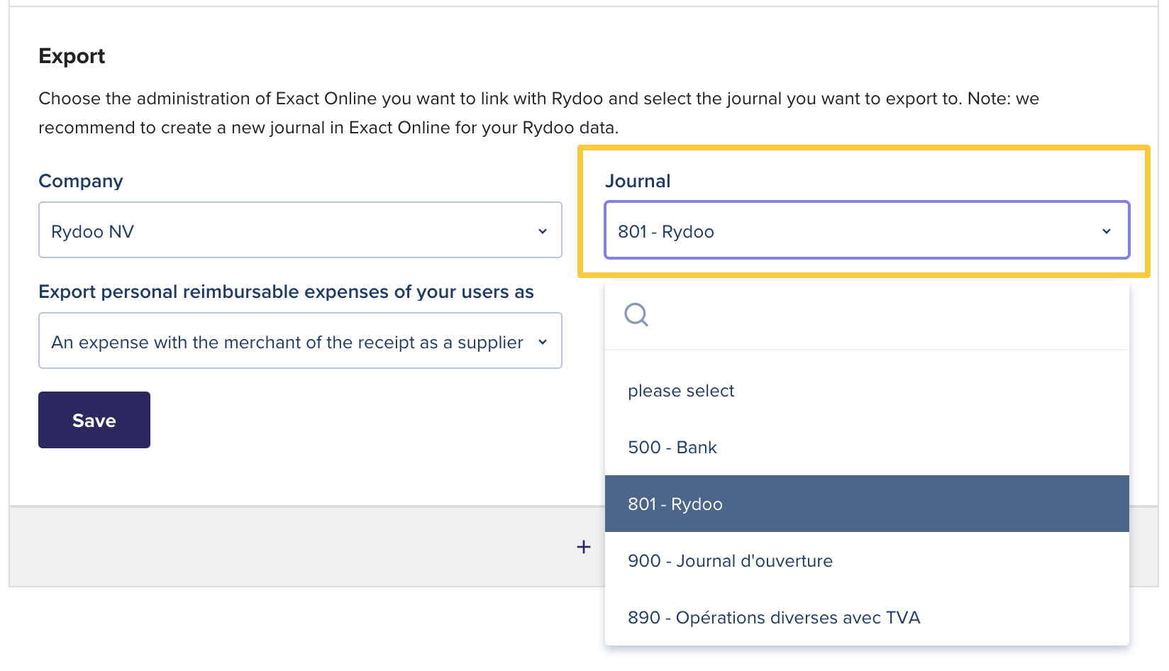 The Rydoo expenses will be later imported to the selected journal