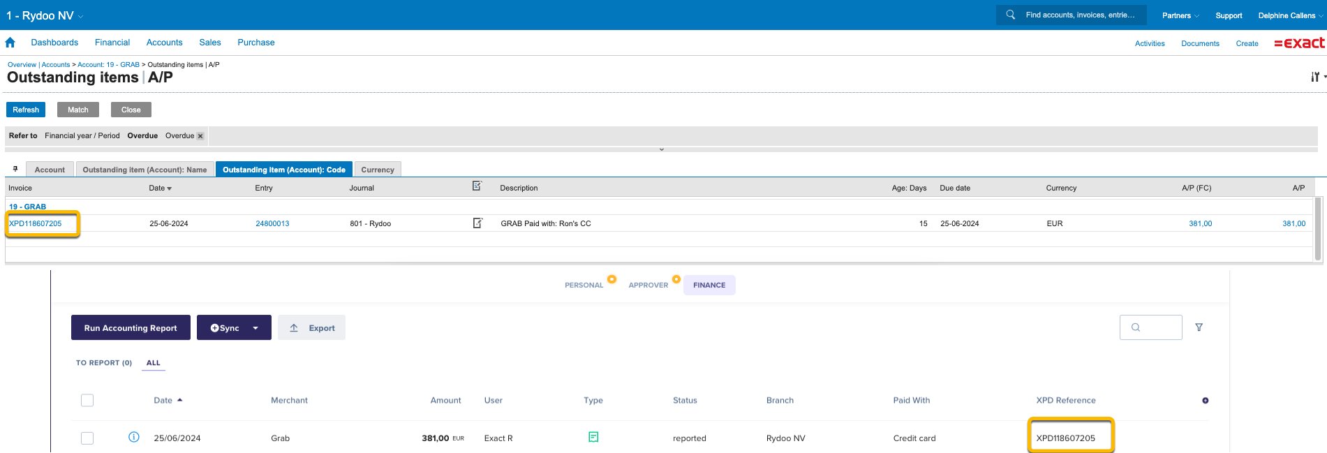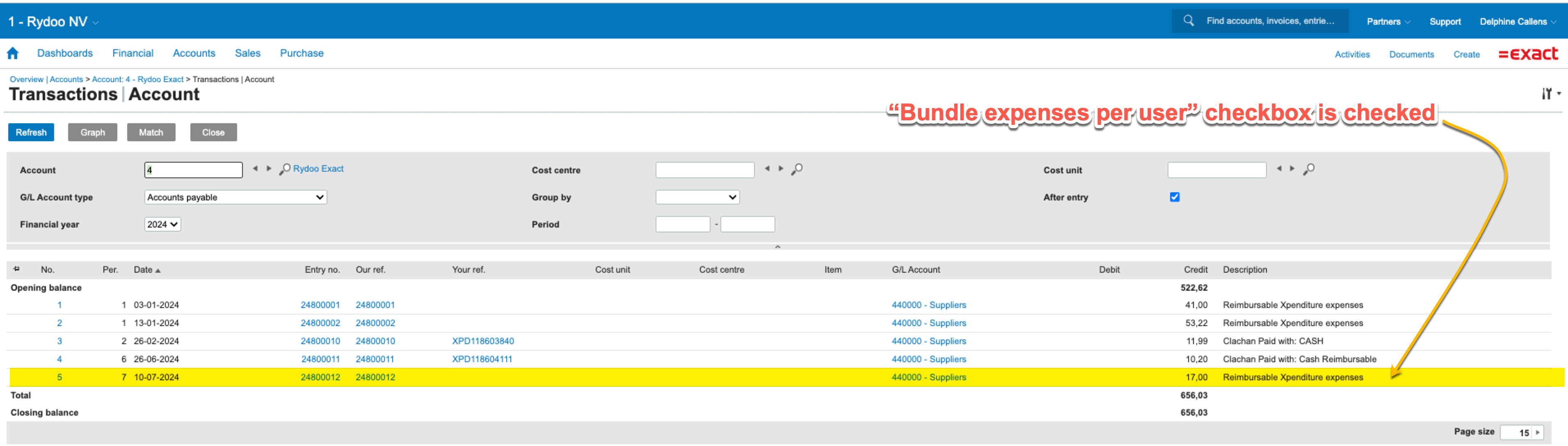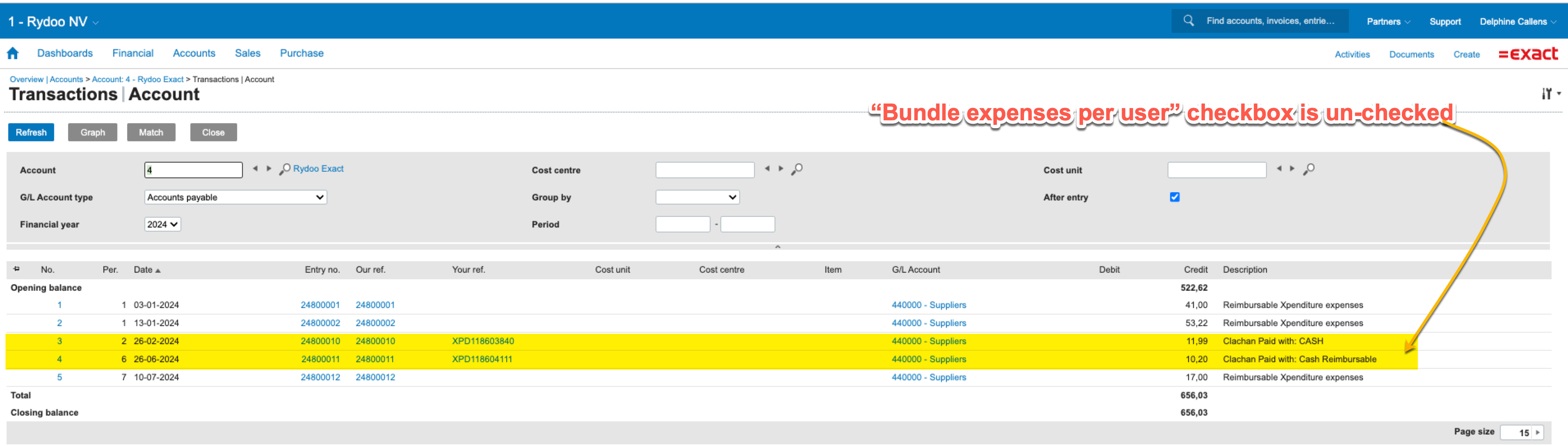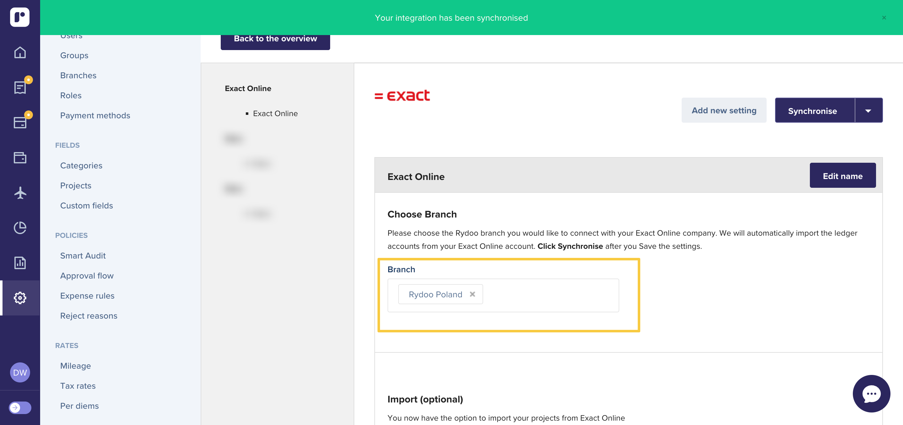 Display of Rydoo Custom Fields in Exact Online