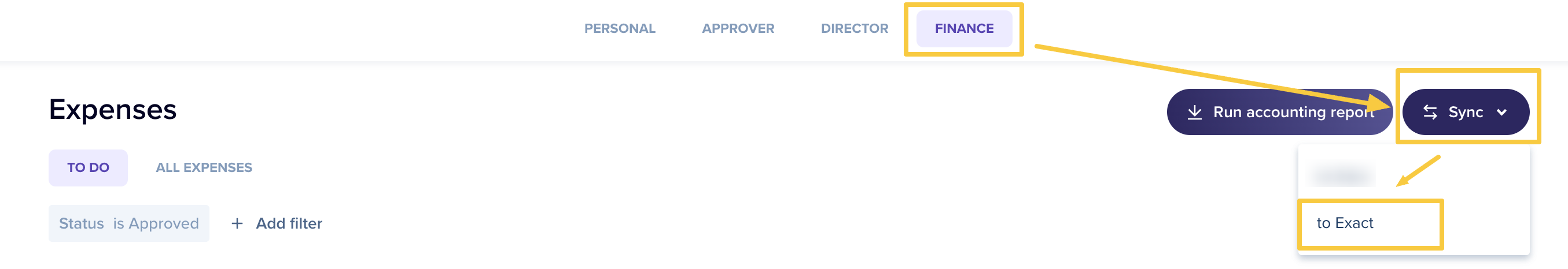 The expenses were set as Reported, and the sync didn't bring them to Exact Online