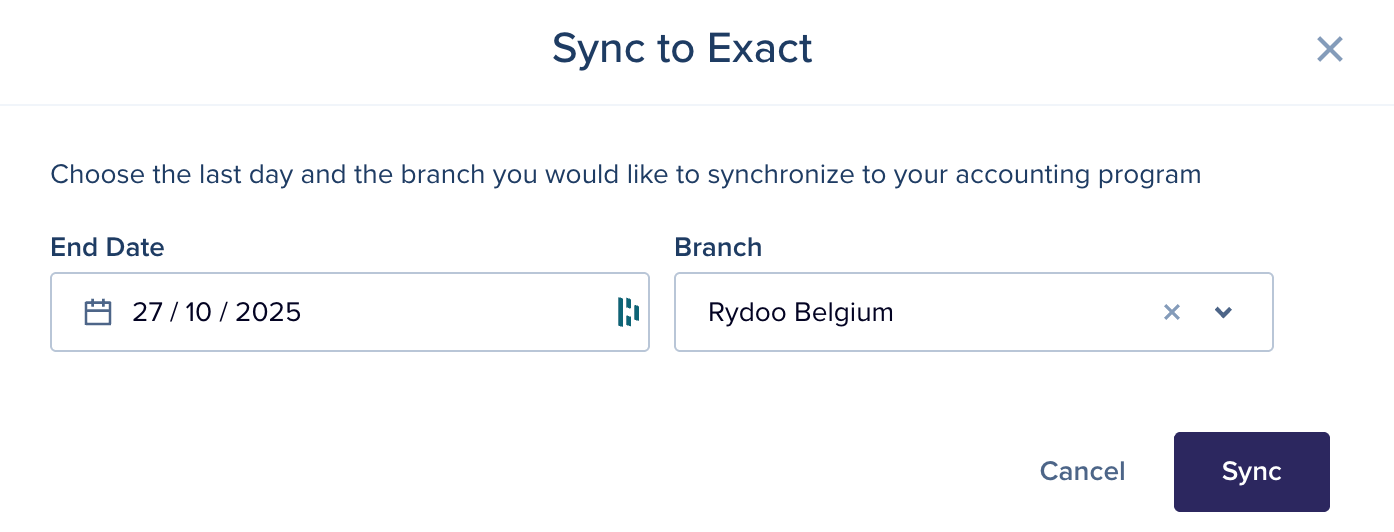 It's also possible to connect with your accounting partner on a branch level, enabling you to export to different Exact accounts or to the same account.